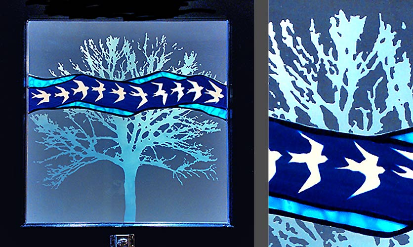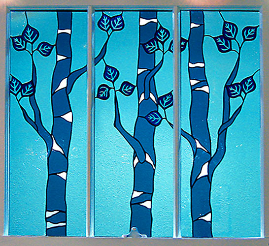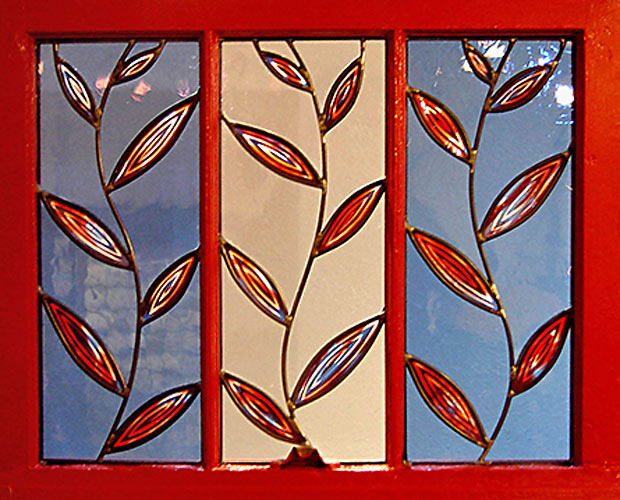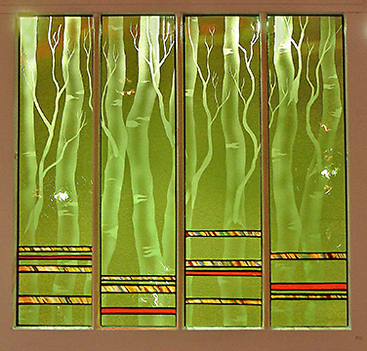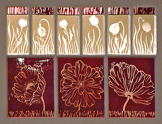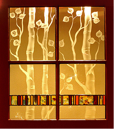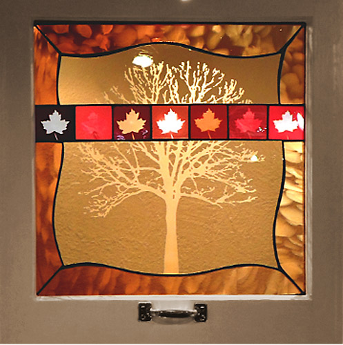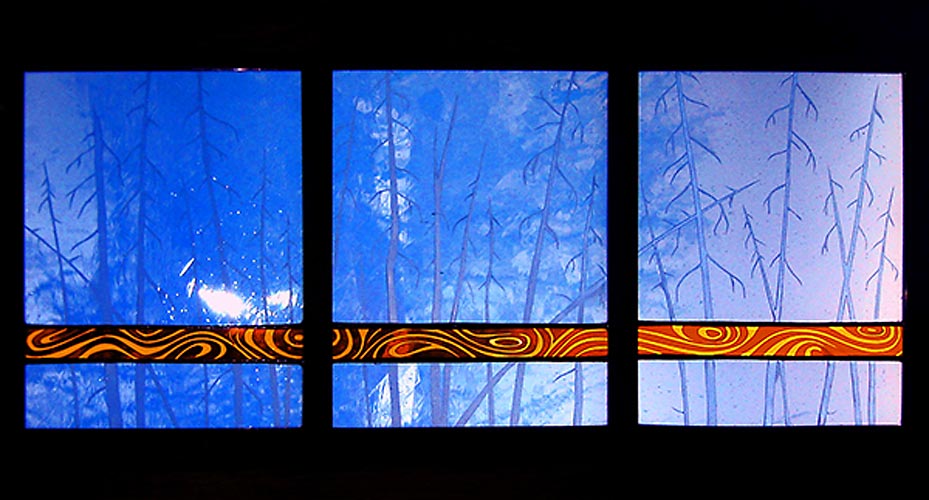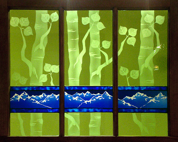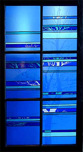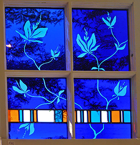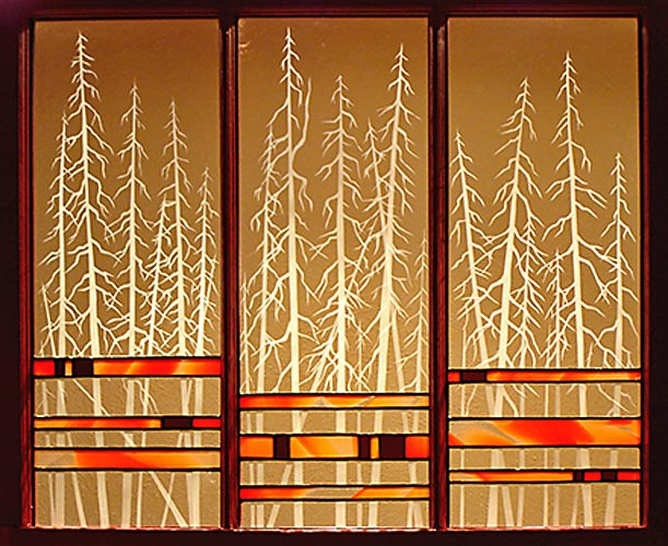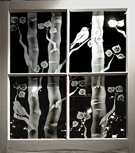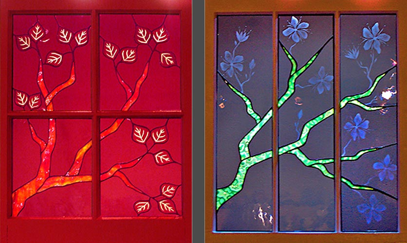 For these stained glass pieces I take old window frames and remove the existing glass. I re-finish the frames and insert new etched or stained glass panels. Rejuvenating abandoned windows and creating a sparkling new piece of art is a really rewarding way of combining old and new materials. I often make these types of windows as custom wedding gifts and have had them built into the interior walls of homes.